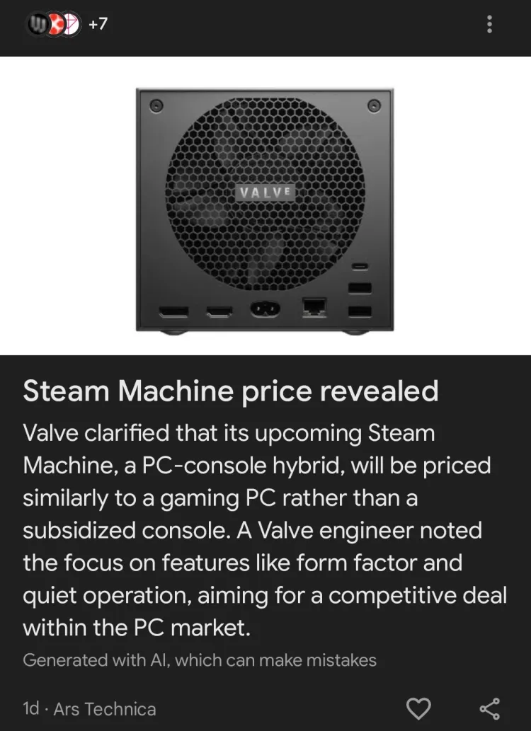 其间一个比如是“Steam Machine 价格发布”,但实际上底子没发布,Valve 清晰表明要到下一年才会发布价格。Ars Technica 本来的标题要谨慎得多:“Valve 的 Steam Machine 外形像游戏主机,但别盼望它的定价也如此亲民。”