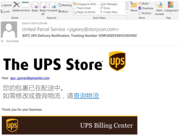 在了解所谓企业安全构建的重要性之前,咱们先来看一张图,这是一份来自 UPS 的物流信息回单,看着如此传神的它,最警觉的安全专家也难免会点击链接中招——本来,这份物流信息回单其实暗藏着一个木马病毒。